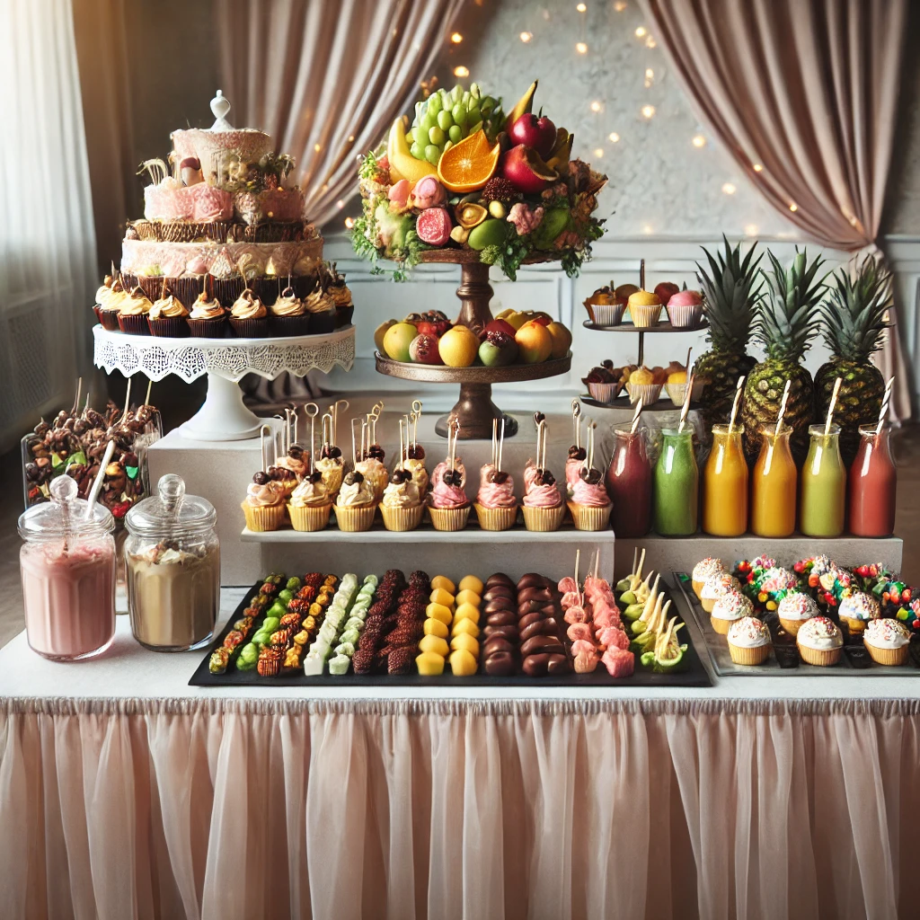 עיצוב בר מתוקים או בר בריאות – הכולל שייקים טעימים ומגשי פירות עונתיים.